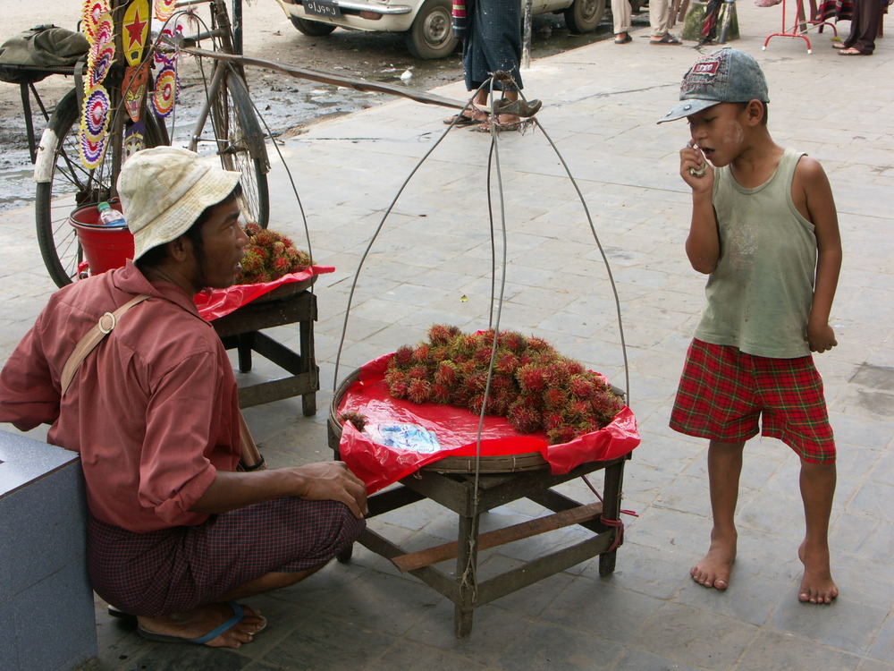 In a working-class area of central Rangoon, children pump gas, fix generators, sell fruit, serve tea, cook food, clean monasteries. Across the country, kids steer coconut boats loaded with contraband or fight in ethnic wars in the jungle. Most have at most four years of schooling. Almost every mom-and-pop business employs children for less than a dollar a day. While some seem happy to be working with parents or relatives, many have been bought and sold.