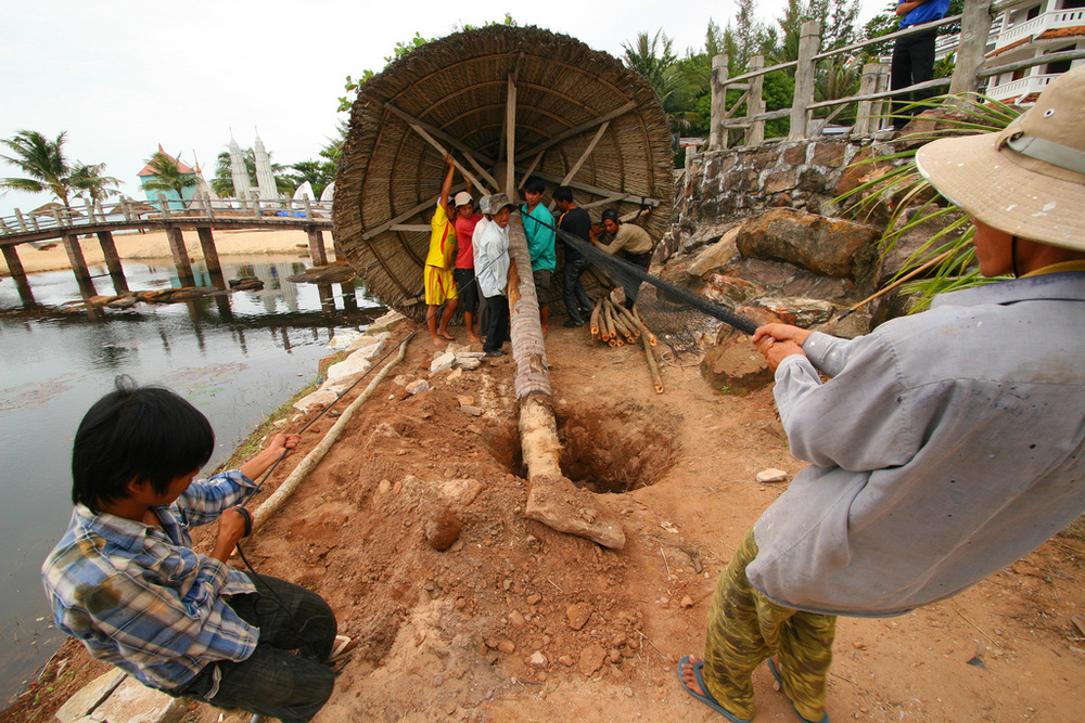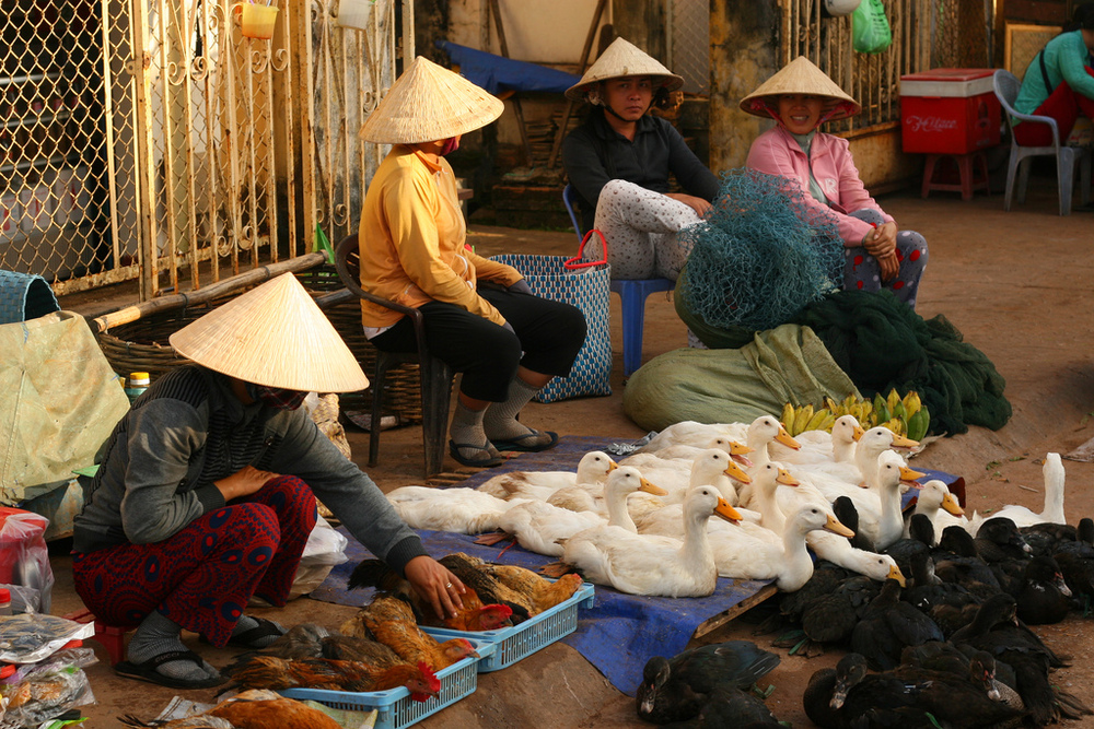 Market sellers in conical hats hawk baguettes, ducks, flying lizards and other items rarely or never seen on the Thai side of the Gulf. Taxi drivers in ties ply red dirt roads to pearl farms and old-style fishing ports. Villagers, who water the roads and erect thatch walls to protect their homes from dust, gather up seaweed and hawl in squid nets by using pedal power on homemade winches. From the bustling morning markets to the teeming restaurants of the night market, the Vietnamese show an energy and industrious which has the economy – and prices – rising by levels around 10 percent per year.