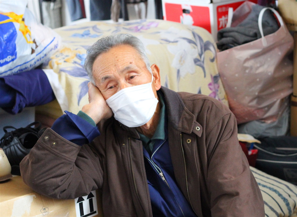 0410-Yuki Ninomiya, 83, has been staying more than 45 days and nights at a crowded shelter after a tsunami destroyed her home in Higashi-Matsushima area of northern Japan.