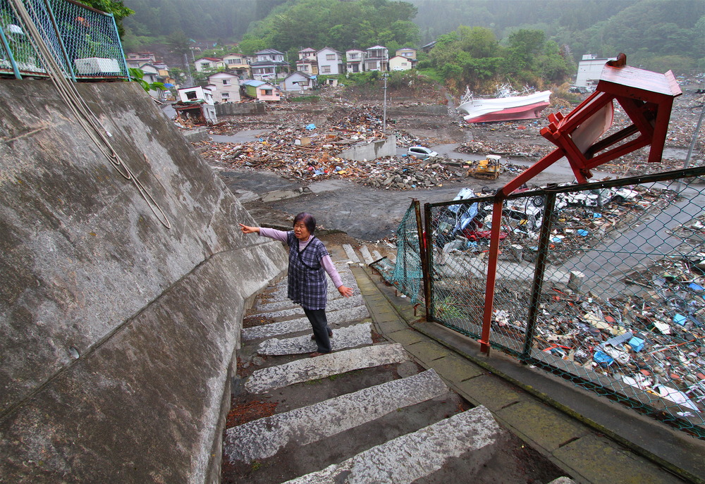 “I saw everything,” said Toku Juoudate, 74, whose family has been looking after the shrine for 23 generations. “The tsunami pushed the boats along with it, and the boats tore the roofing off houses. The tsunami swept people away who were standing on rooftops. My son yelled for everybody to come up higher, and we all survived because God protected the temple and turned back the tsunami,” she said.