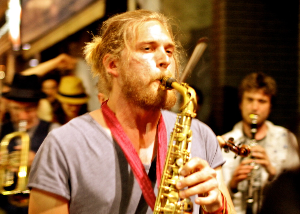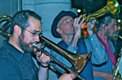 On a Saturday night, a new generation of Gypsies take over the clubs and streets of Toronto. For the 14-members of the band plus their devout followers, the “stage” is wherever they make it. At Lee’s Palace, they storm the stage to accompany Chilean superstars “Chico Trujillo.” Then at La Palette on Queen Street, they mount bar tops reinforced just for their raucous shows, which attract the mad and beautiful of Toronto’s vibrant art scene. After closing time, they pour onto Queen Street and march to Spadina with pounding drums and blaring horns, a clarion call to the fun-loving folks of Toronto who won’t let anyone take the music away from their streets.