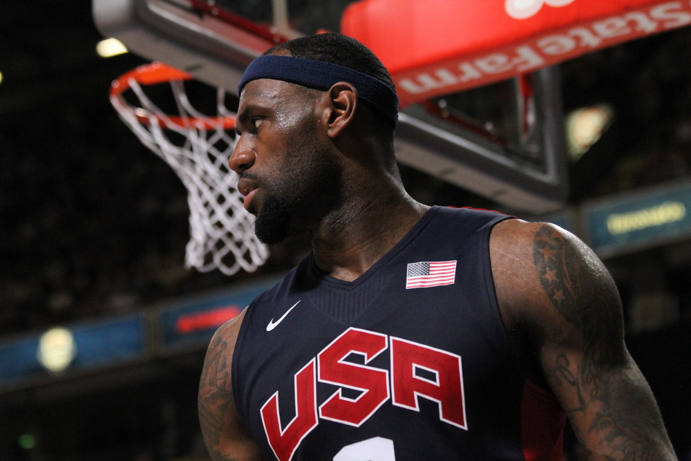 When a referee asks the USA bench to kindly stay off the court, King James gives him a dirty look and hollers out “Who are you?”