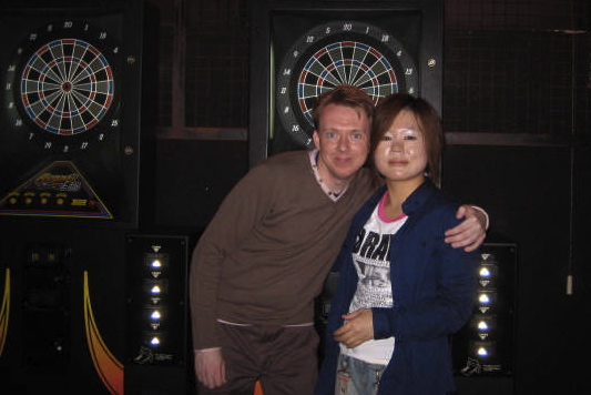 In early 2008, Robertson met Yuuko Abu in Kobe. She had returned from studies at Concordia University in Montreal, and they shared interests in hockey and playing darts.