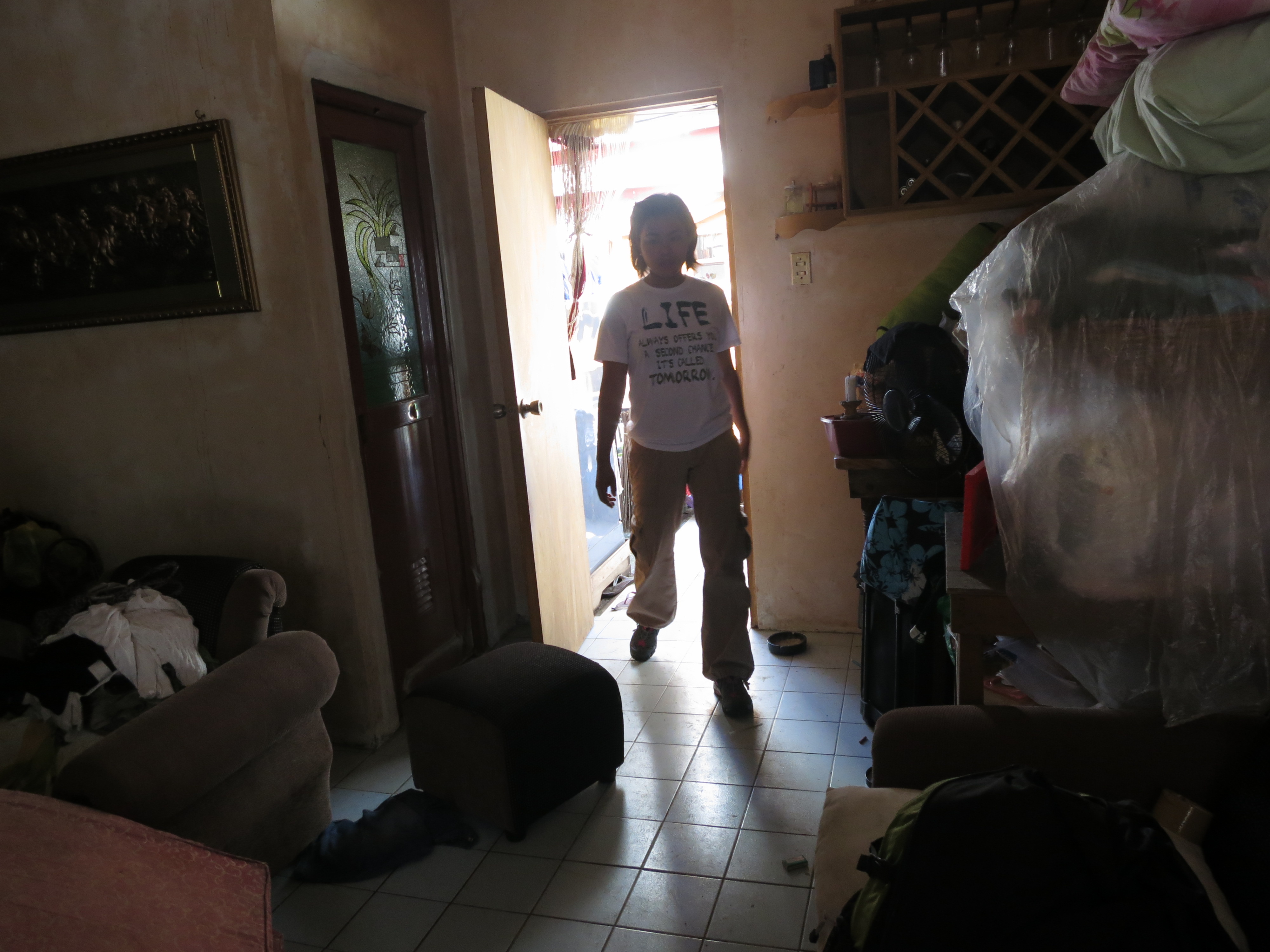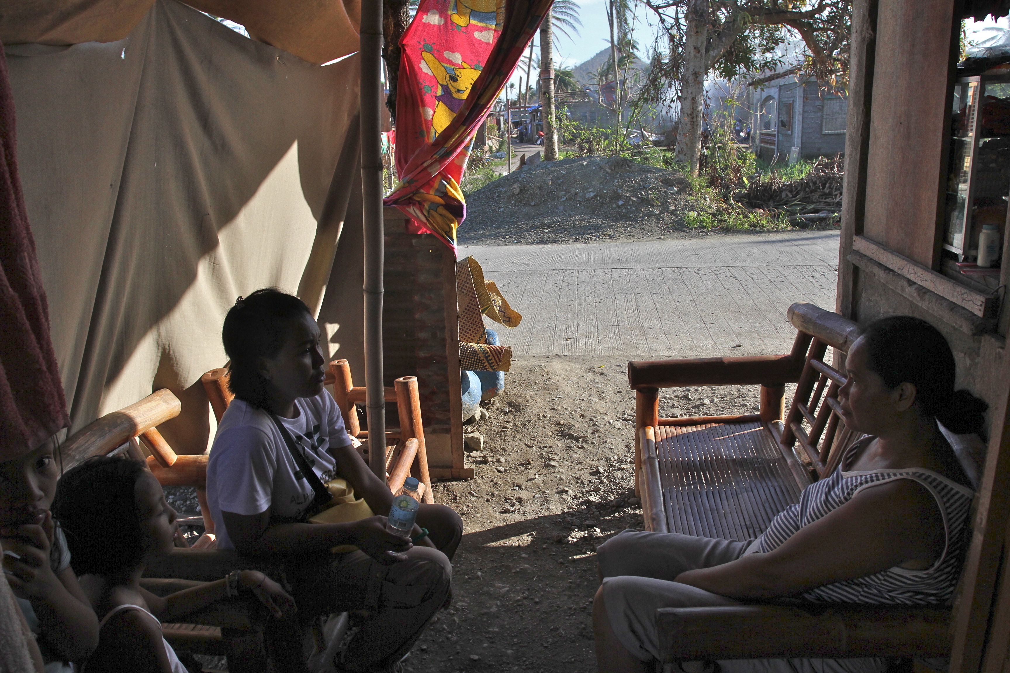 Down the street, a number of children were sheltering with Febsterr’s aunt and her mother. The kids look haggard. They were scratching their eyes. I gave them some handi-wipes, which turned out to be a popular item in the disaster zone.