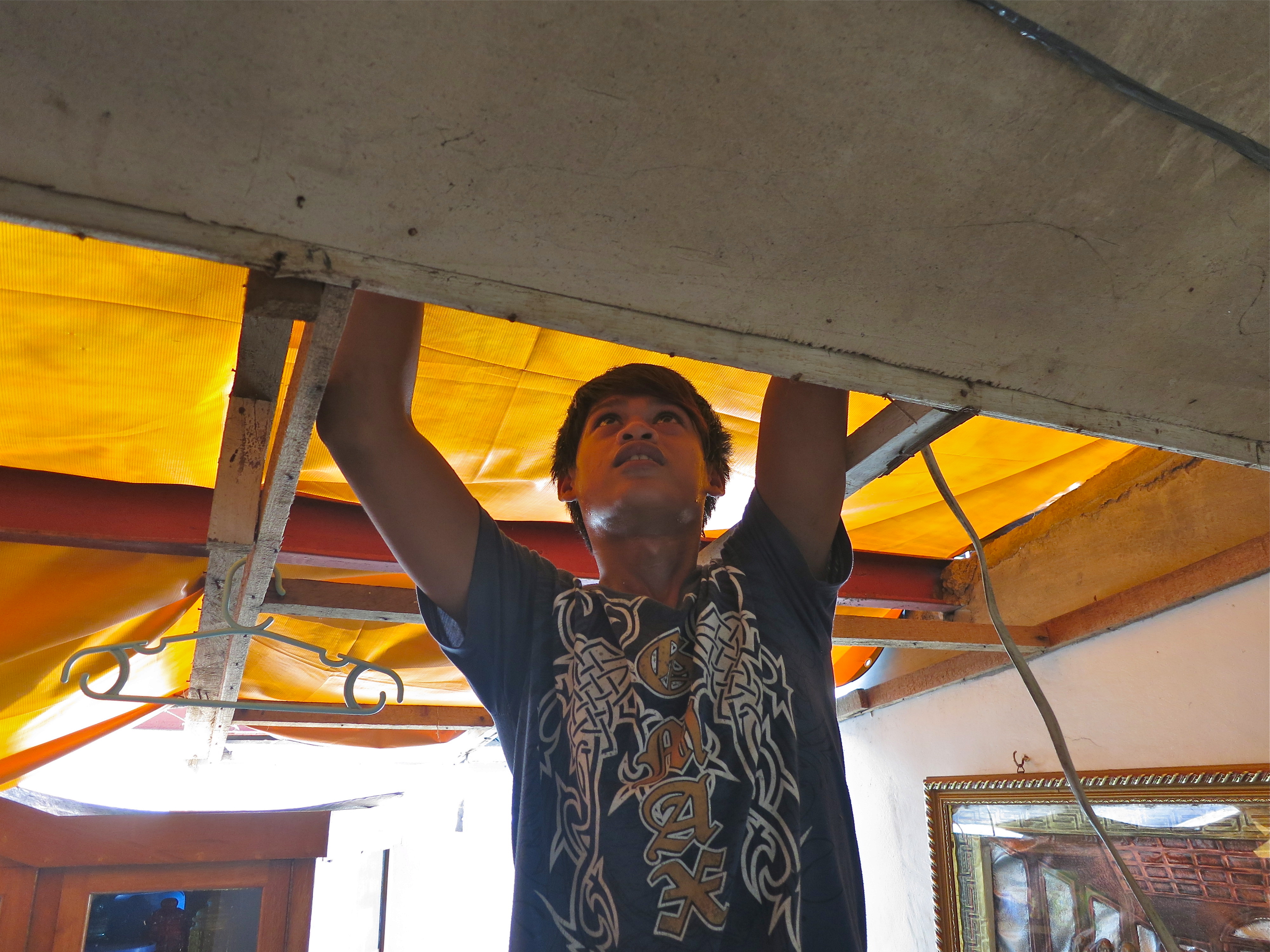 Determined to make her mother’s house live-able again, Febsterr bought an overpriced tarp from a neighbor and stared at the roof, wondering how to put it up.