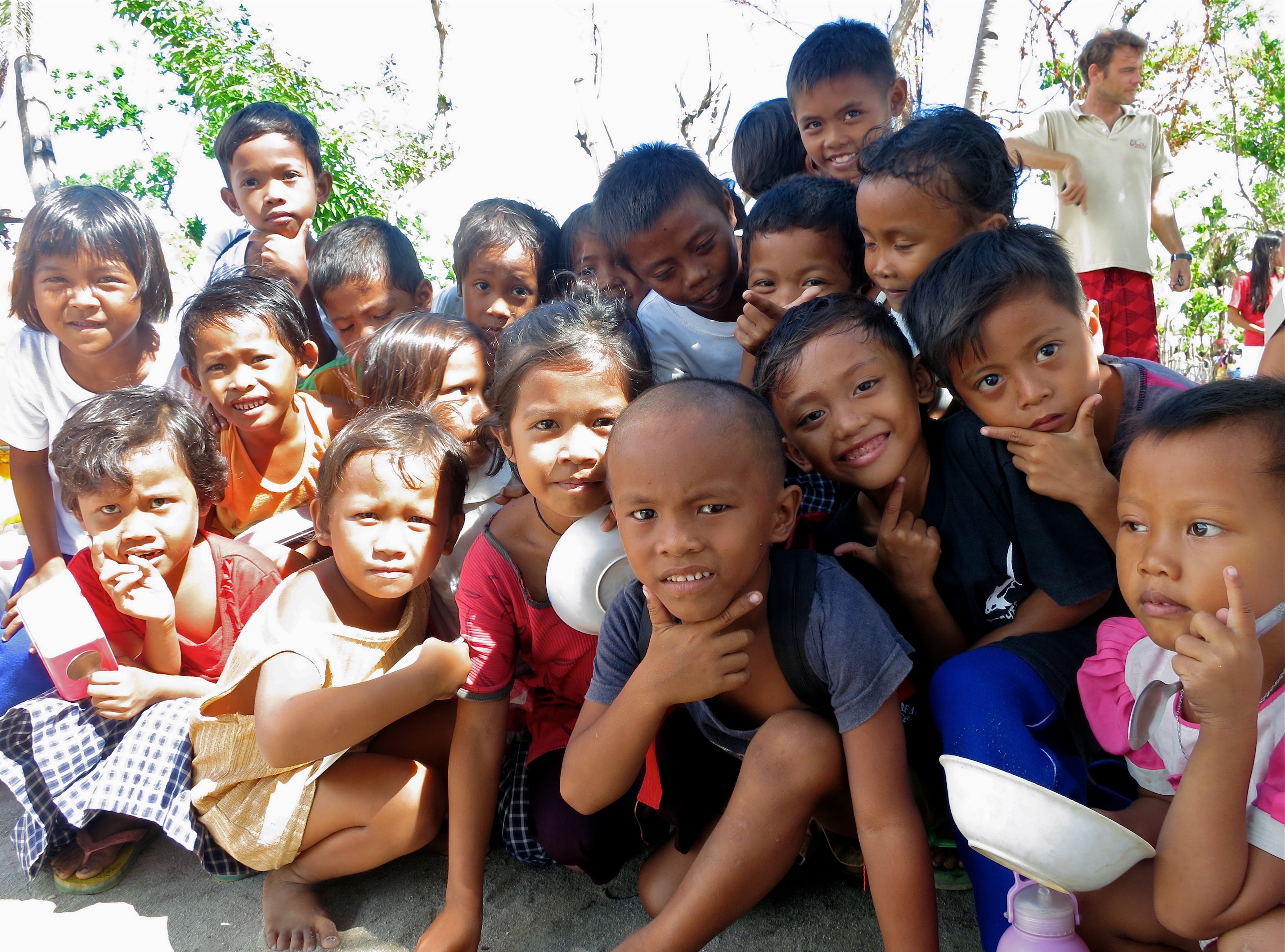 Anna, a Filipina educated in the US and Australia, has been feeding about 30 children every day and supplying locals with wood stored in the yard of their Evolution resort. “Some children are under-nourished. One girl lost both her parents before the storm and is living with relatives. They probably aren’t feeding her enough, because she always asks for third helpings,” she says. “Families can receive wood by agreeing to volunteer with rebuilding efforts. It’s working well. They write their names and put smiley faces on the wood.”