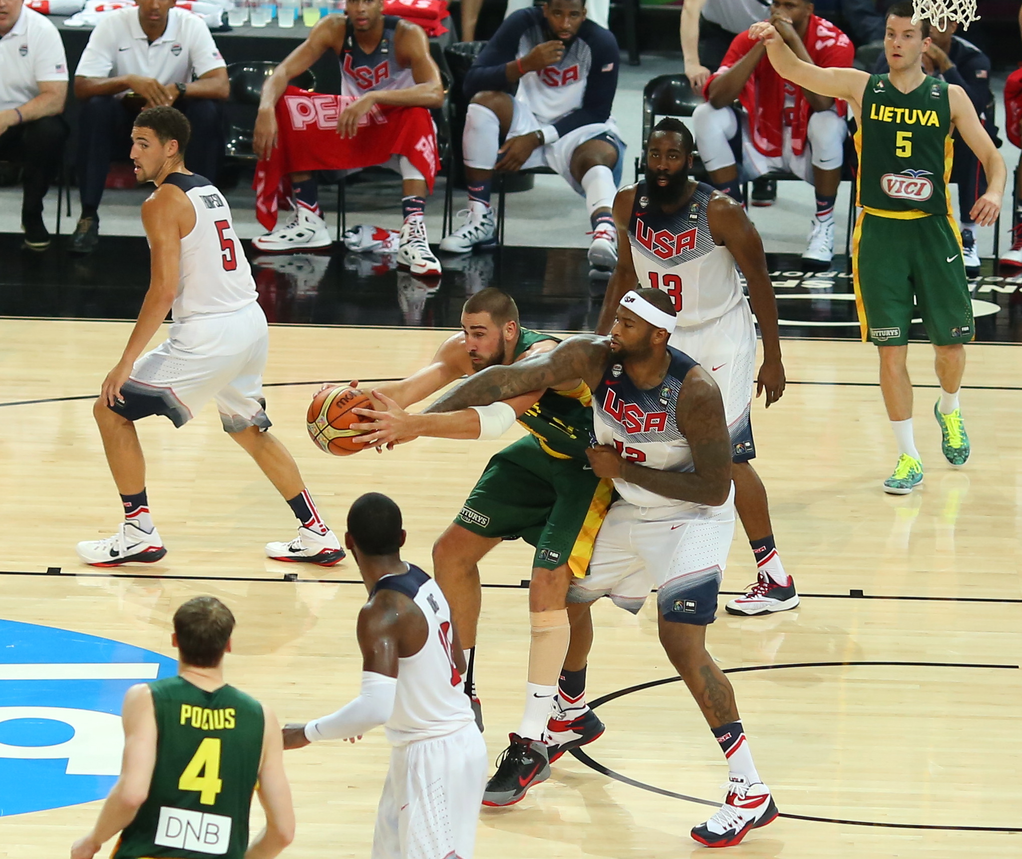 DeMarcus Cousins helped the US muscle Valanciunas out of the post and make him work for everything.