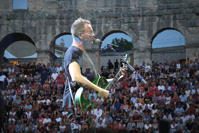 At the ancient Roman arena in Pula, Croatia, a love-able side of Sting emerges. Sting, as it turns out, is a family man, beaming on stage with the look of a proud patriarch. He’s also employing the father-son team of guitarists Dominic and Rufus Miller.