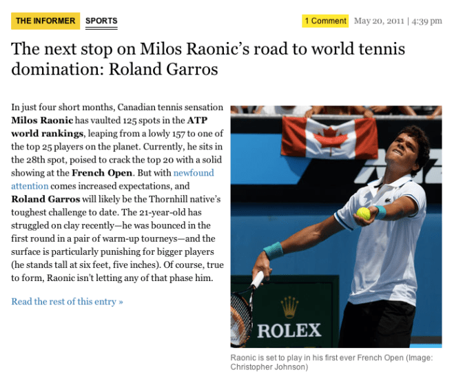 Copyright infringement is rampant in tennis media.