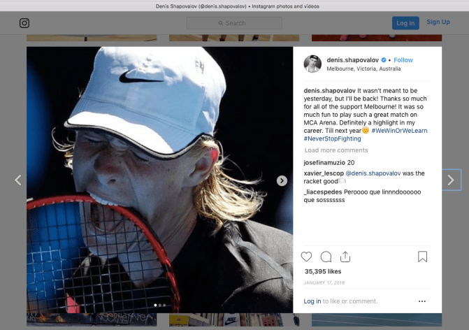 Some athletes often use photographs without explicitly crediting the photographer. It’s not clear who created these high quality professional images with expensive camera gear, or whether the athlete paid or requested permission for usage.