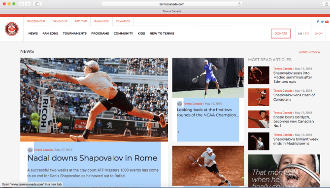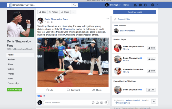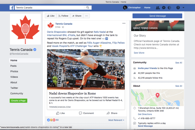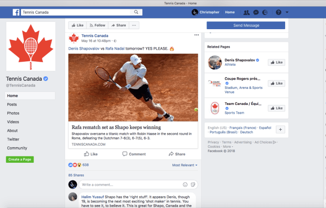 Tennis Canada and these “fan pages” promoting Tennis Canada made unauthorized usage of at least 10 of my photos of Shapovalov, as well as my photo of Rafael Nadal.