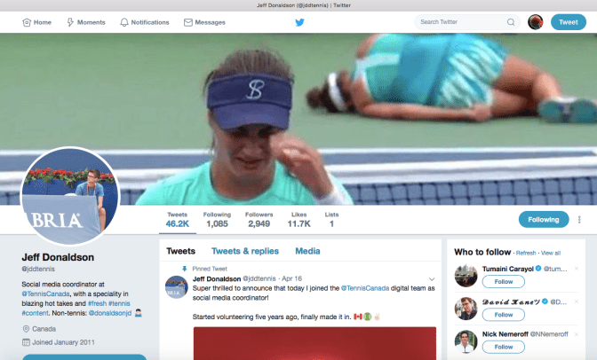 “It’s clear that I have posed no threat to anyone at Tennis Canada,” Mr. Johnson said. “The Defendants have damaged me by refusing to pay me for my work and preventing me from covering or even attending pro tennis tournaments. I have not damaged them. Indeed the Defendants, Mr. Donaldson and others continue to work for pay in their jobs. They continue to work at tennis events that have banned me. Thus I have justification to defend myself against false accusations raised by the Defendants and their legal teams. None of this gives the Defendants justification to unauthorized usage of my copyrighted works.”