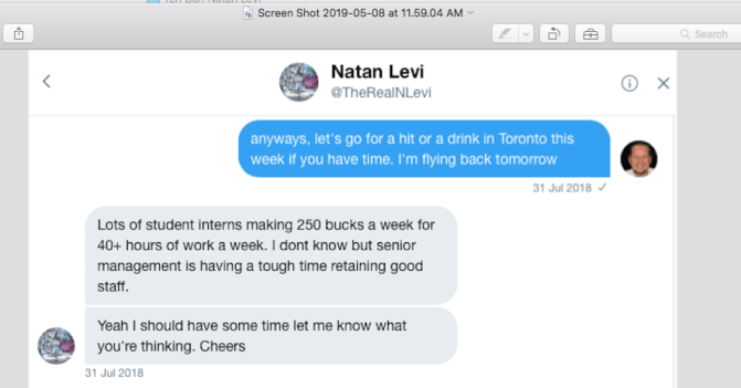 Mr. Johnson said he feared that somebody was hacking his private communications, and he wrote directly to Mr. Levi to ask him what happened, since Mr. Hafso wouldn’t answer that question directly. He says that Mr. Levi declined to answer his questions, only saying: “”Hi Chris. I wish you all the best in your challenges with TC (Tennis Canada). I hope there is an amicable solution. Best, Natan.”