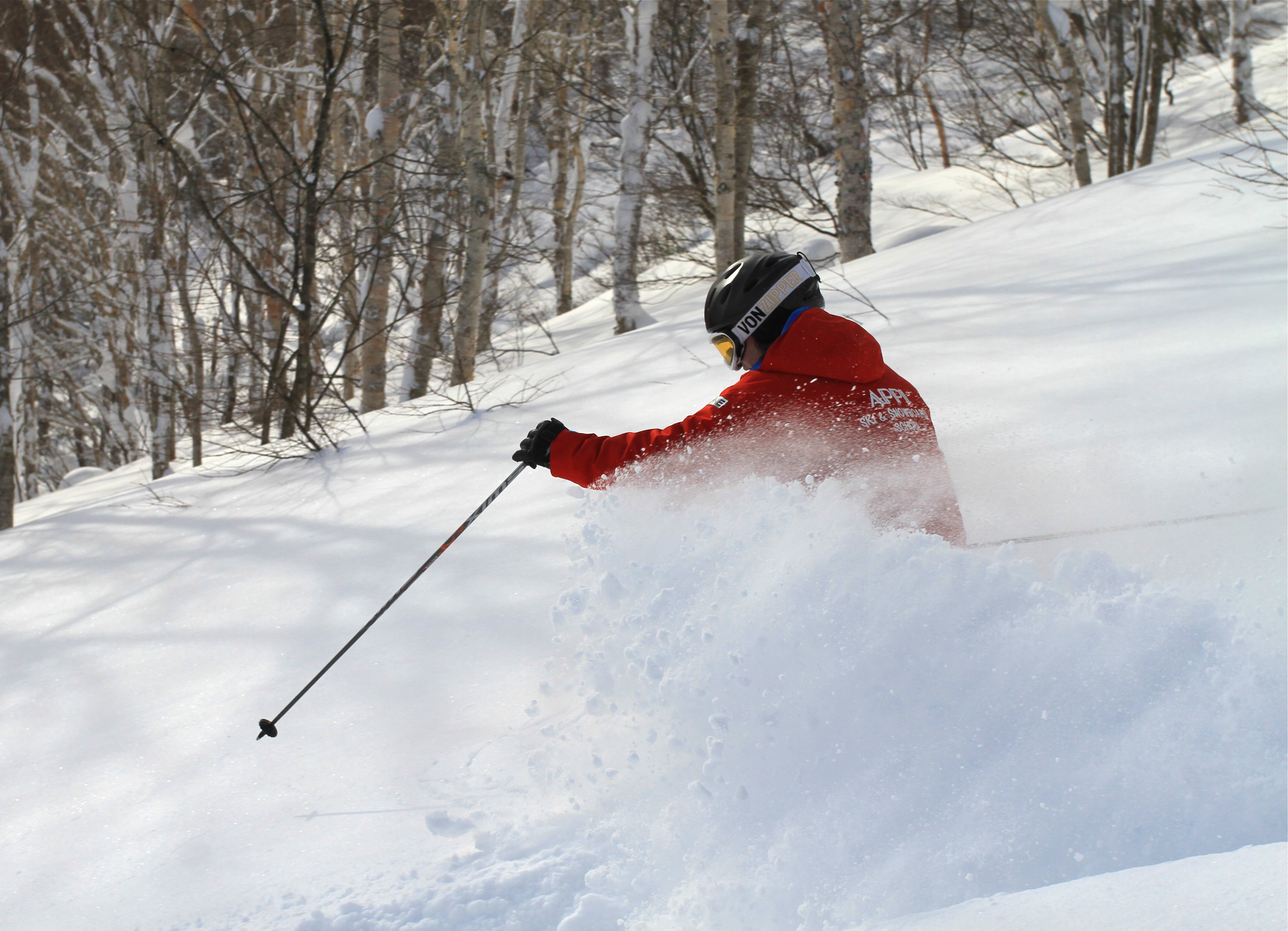 Throughout the morning, we find more stretches of powder. This is what we live for. Trying to keep up with Shuhama, I raise my ability to new levels, and accomplish runs without falling.