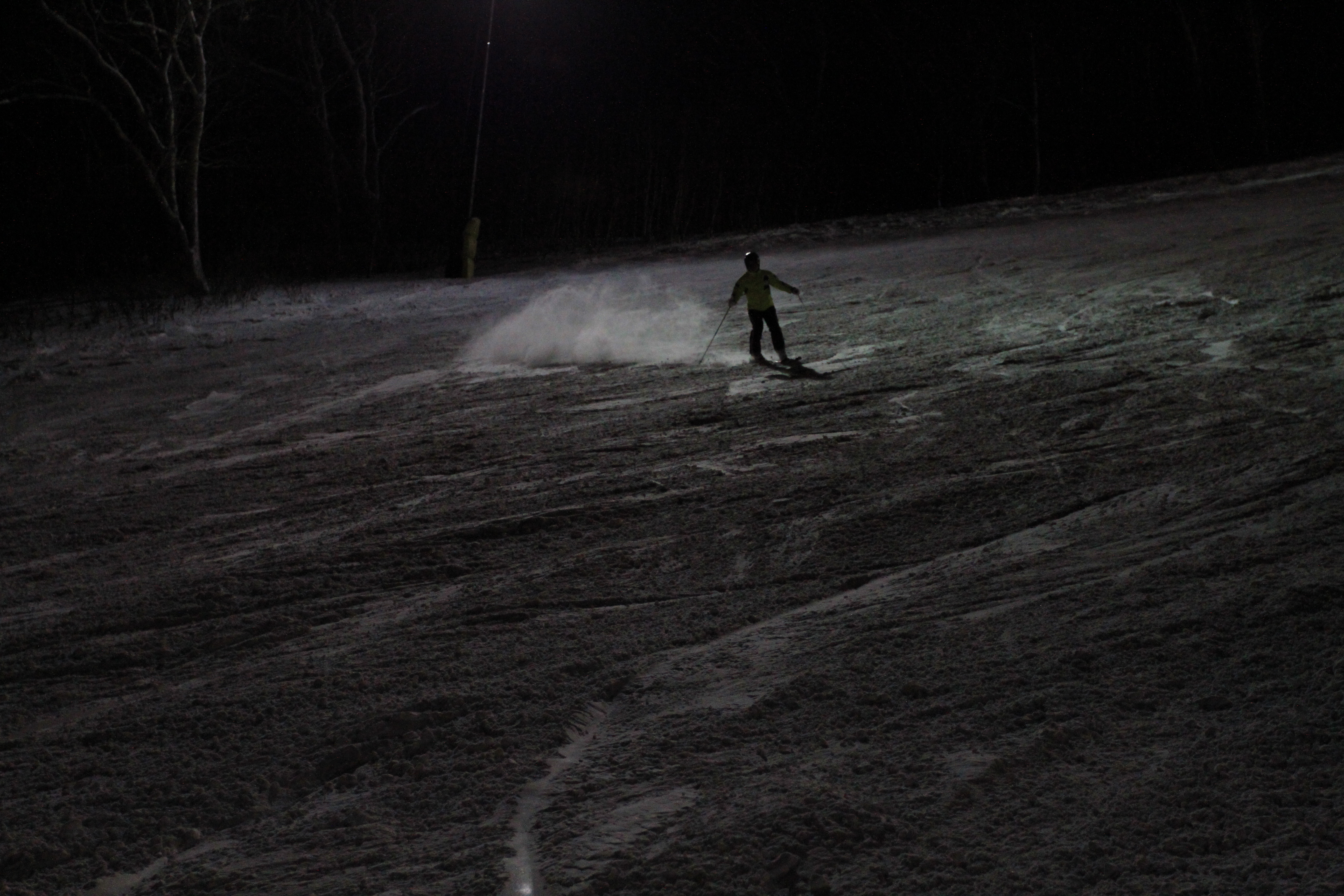 Night skiing is blissful. It’s like swimming in a lake on a hot summer night, only this time, it’s a bone-chilling minus 20. The skiing techniques are the same — knees bent, hands forward — but the atmosphere and the alien light make it a totally different and otherworldly experience.