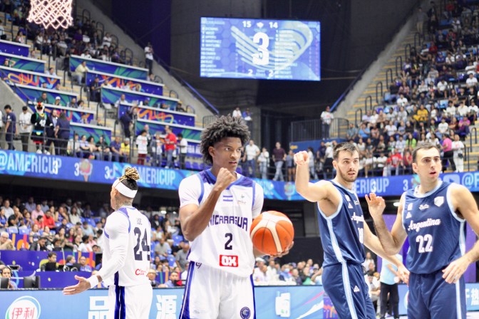 Basketball mania is taking over Managua, the capital of Nicaragua, at the gleaming Polideportivo Alexis Arguello arena, which almost filled to capacity of 9000 for Nicaragua’s opening game against powerhouse Argentina. Nicaragua fought hard early in a close first half but then had trouble scoring after a bat seemed to disrupt a shot. Many fans wore the colors of the Nicaraguan flag to cheer on the underdogs who are punching above their weight in the basketball world by hosting their first major tournament.