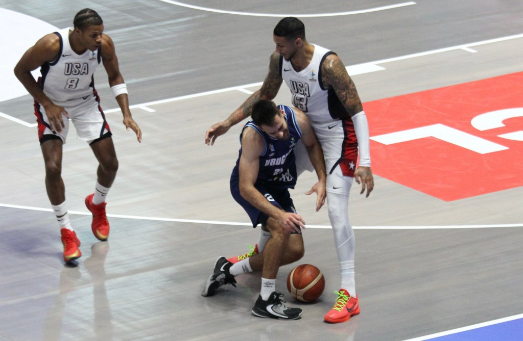 USA trailed 45-38 at half-time after technical fouls gave Uruguay free points at the line.