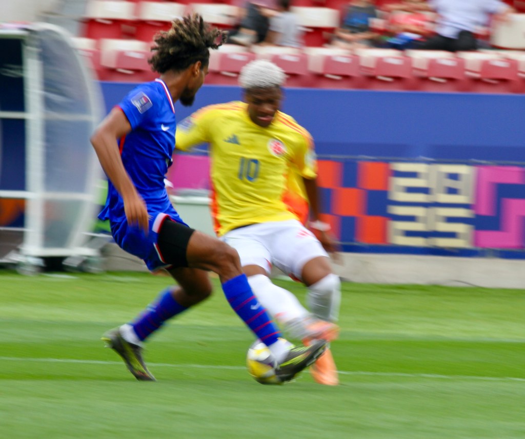 Colombia looked set to go up 2-0 after Royner Benitez picked Elyaz Zidane’s pocket. But he missed a glorious chance to score by blasting a shot over the crossbar.